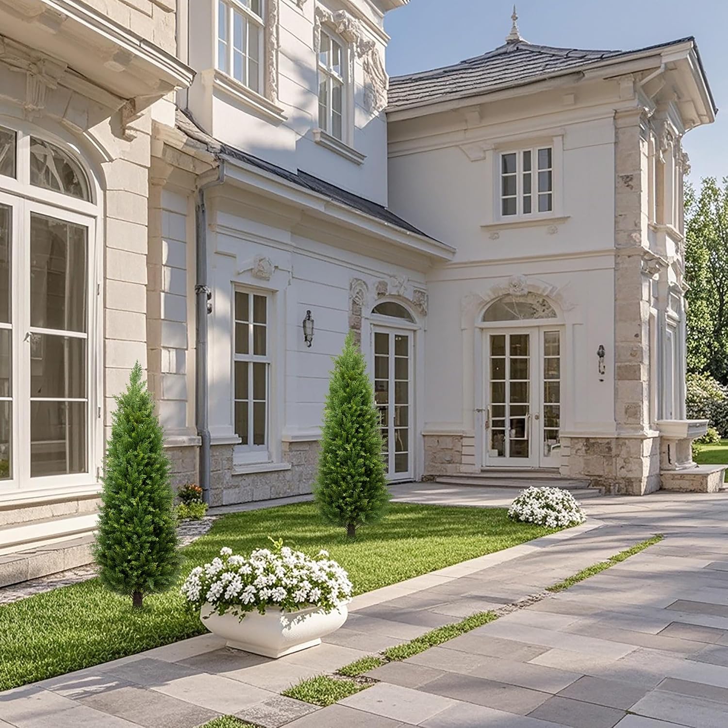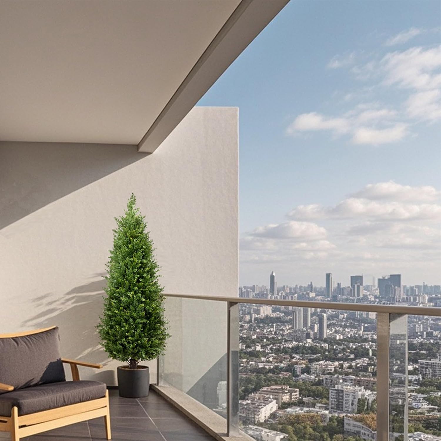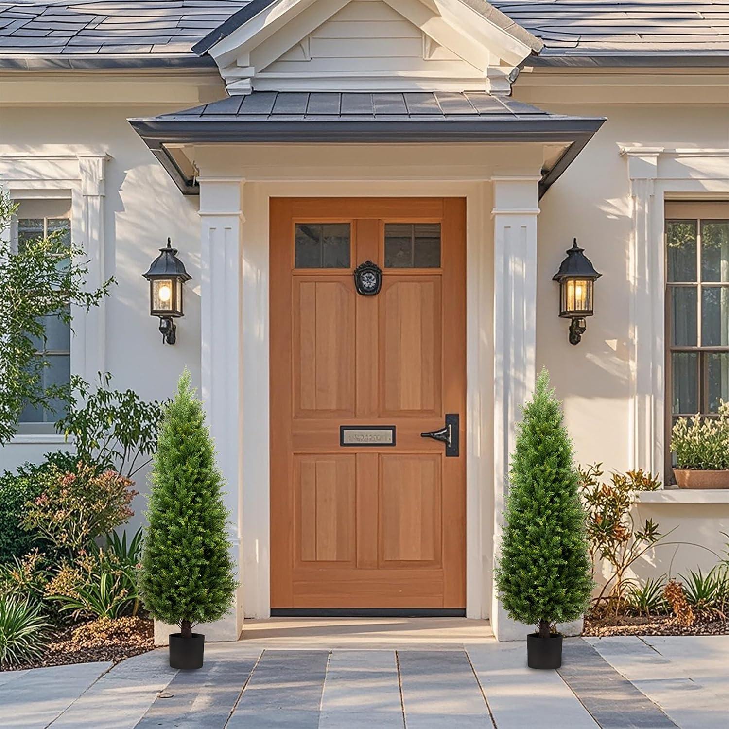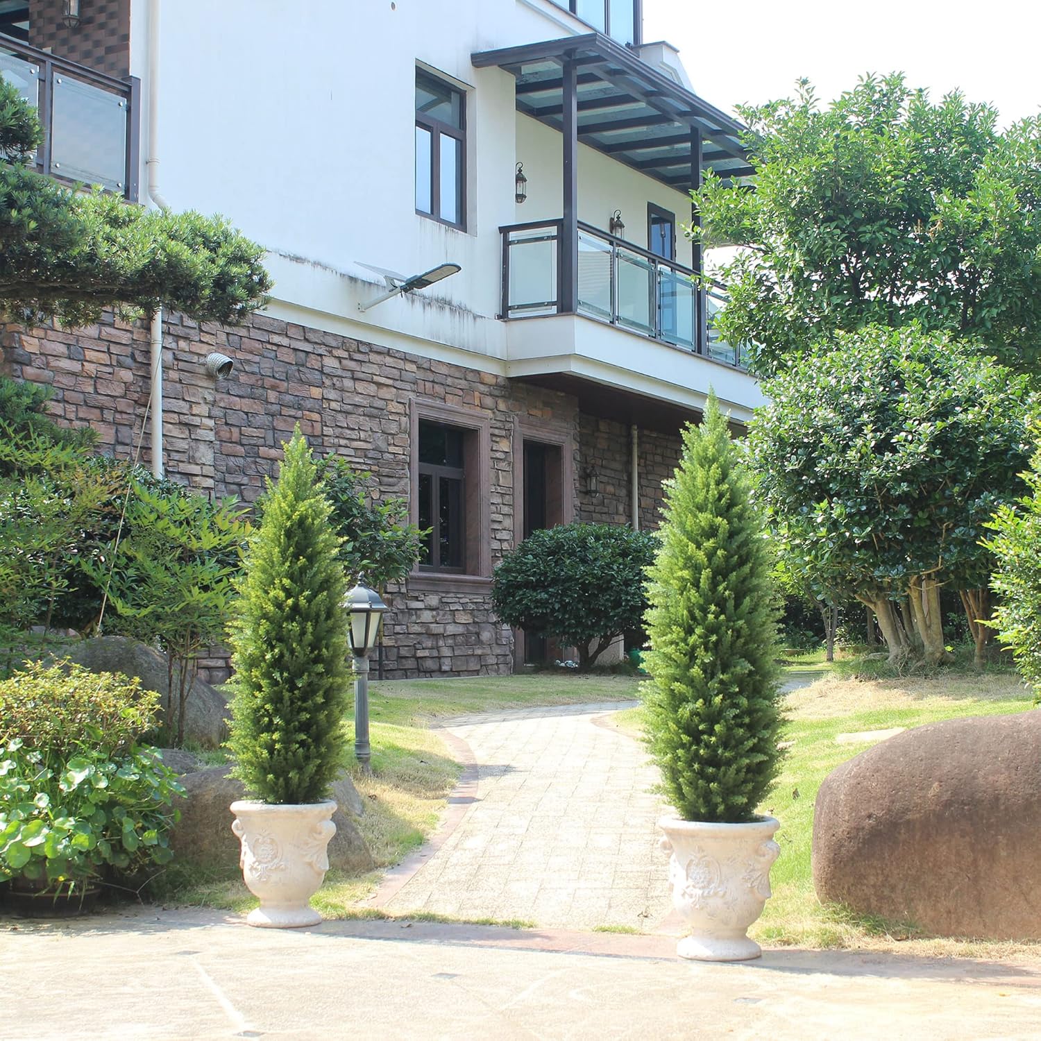 4ft Artificial Cedar Trees Artificial Topiary Trees Set of 2 Faux Cypress Plants UV Resistant Potted Bushes Faux Shrubs for Outdoor Indoor Front Porch Garden