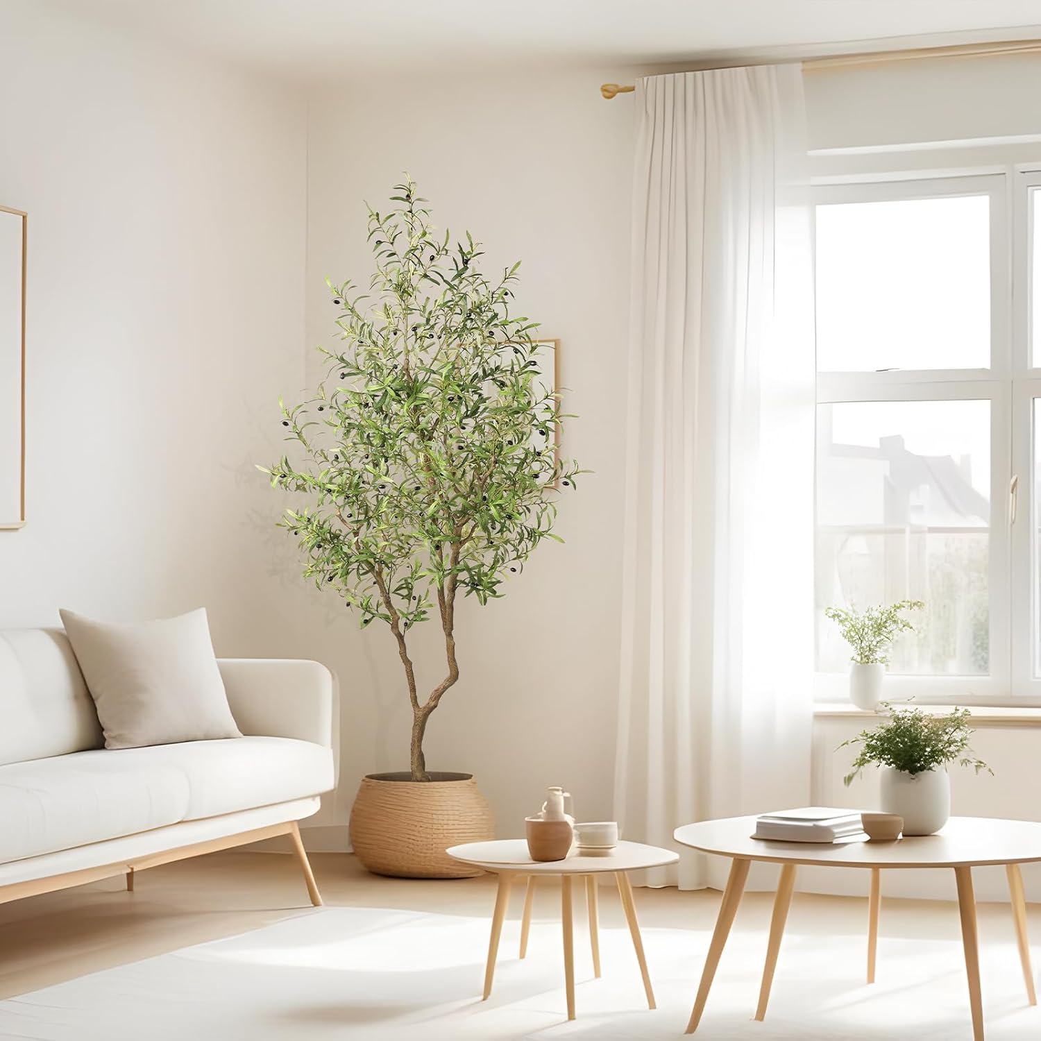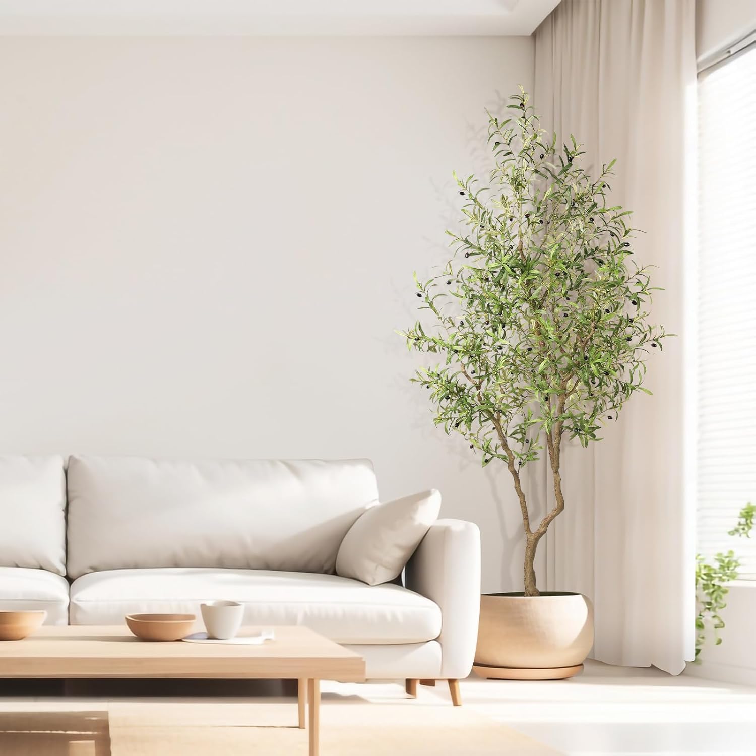 8ft Faux Olive Tree - Large Realistic Artificial Olive Trees 8 Feet (96") Indoor Fake Plants with Realistic Trunk, Adjustable Branch, Olive Silk Tree with Planter for Home Living Room Decor