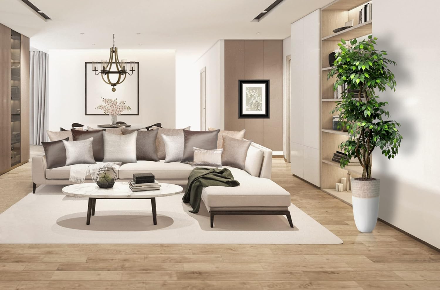 Cypress & Alabaster Handmade 6.5ft 3-Tier Ficus Artificial Tree with Ethically Sourced Real Wood Trunks, Hypoallergenic, 6.5-Foot, Green