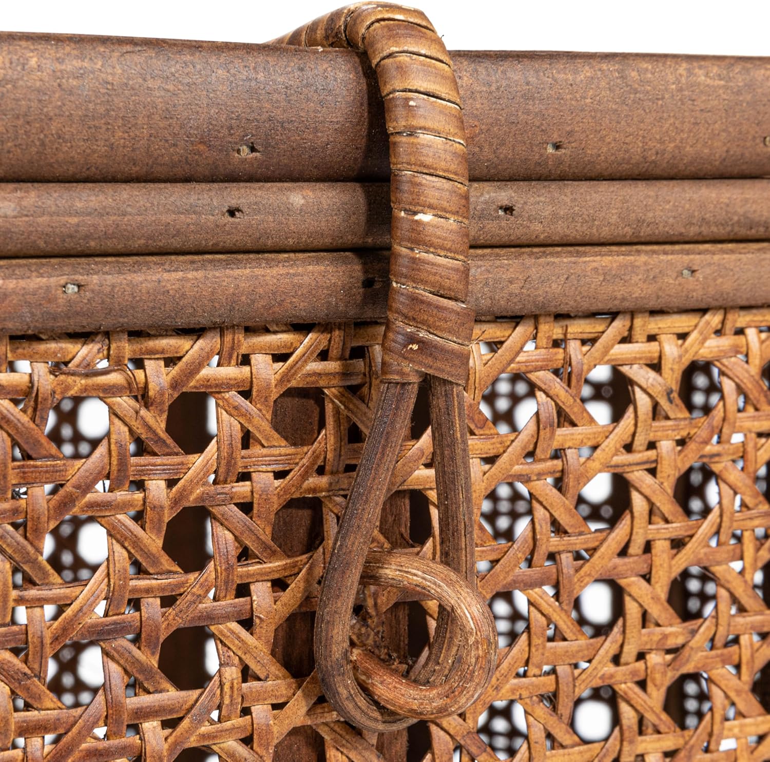 Elevate any interior design scheme with these stunning decorative storage pieces that embody the essence of sophistication and natural beauty. This versatile set features two oval-shaped boxes, expertly crafted from woven rattan and finished with a rich, dark brown hue that exudes warmth and elegance. With their captivating woven texture and sleek attached closure, these storage boxes are as practical as they are beautiful. Display them as standalone accents in any living space, or fill them with well-loved textiles and throws to create a discreet yet stylish storage solution. These boxes are designed to be stacked when closed, offering a striking statement piece that adds both texture and depth to any interior design scheme. Alternatively, they can be nested when not in use, allowing for easy and space-saving storage. The natural beauty and sophistication of these boxes make them the perfect addition to any home that seeks to seamlessly blend form and function.