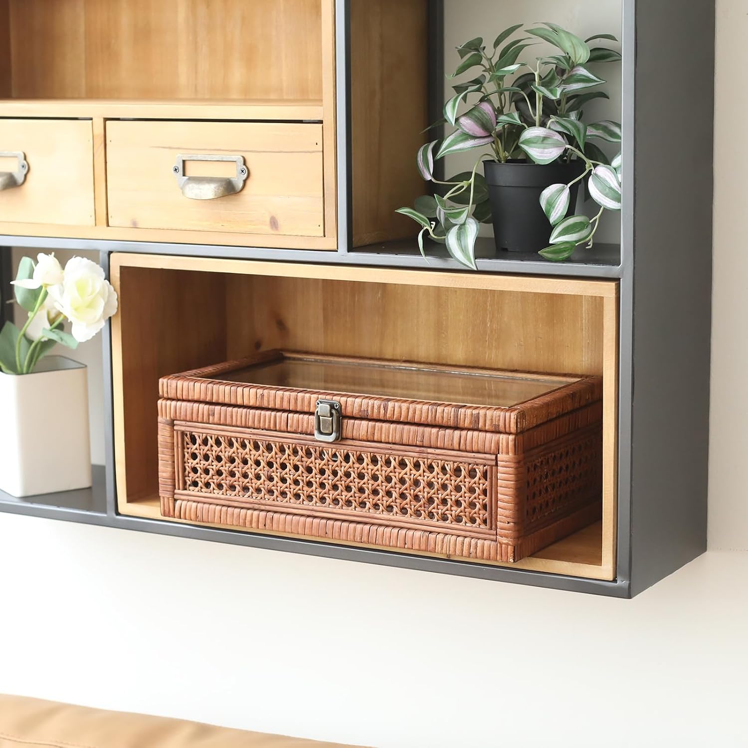 Elevate your home decor with the DECOR4SEASON Rattan and Cane Stacking Boxes. Handcrafted with care, these durable boxes exude a rustic charm that adds warmth and character to any space. The inclusion of a glass top lid not only enhances the elegance of these boxes but also provides protection for your treasured belongings. This set includes two stacking boxes, offering both functionality and style. The larger box is perfect for storing larger items, measuring 14.1" x 8.2" x 5.1", while the smaller box, measuring 11.8" x 6.2" x 3.7", is ideal for more delicate belongings. Arrange the boxes in various configurations to suit your needs and create a visually appealing display. These rattan and cane stacking boxes are the perfect choice for those seeking a boho, coastal, or rustic farmhouse aesthetic. The natural textures and earthy tones of the materials blend seamlessly with these decor styles, adding a touch of natural beauty to your space. Versatile and practical, these boxes are designed to store and organize a wide range of items. From jewelry and trinkets to toys and keepsakes, these boxes provide a stylish and functional solution to keep your belongings in order. Upgrade your home decor with the DECOR4SEASON Rattan and Cane Stacking Boxes and enjoy the perfect fusion of durability, aesthetics, and storage versatility. Embrace the rustic charm and create a visually stunning display while keeping your cherished items safe and organized. Add a touch of natural beauty to your space with these exquisite stacking boxes.
