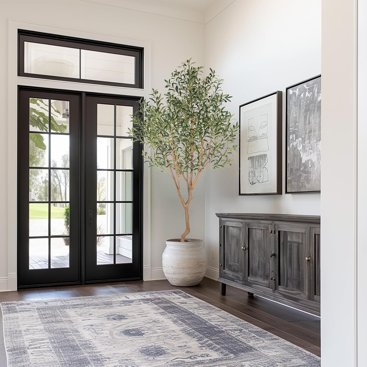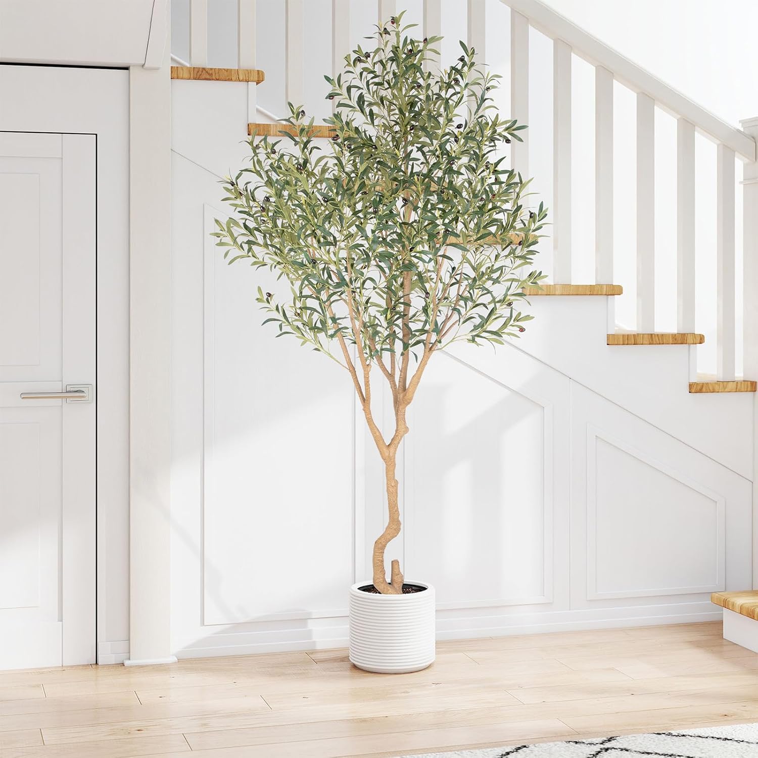 Tall Faux Olive Tree,8ft(96in) Realistic Potted Silk Artificial Olive Tree, Fake Olive Trees Indoor with Green Leaves and Big Fruits for Home Office Living Room Stairs Patio Decor.